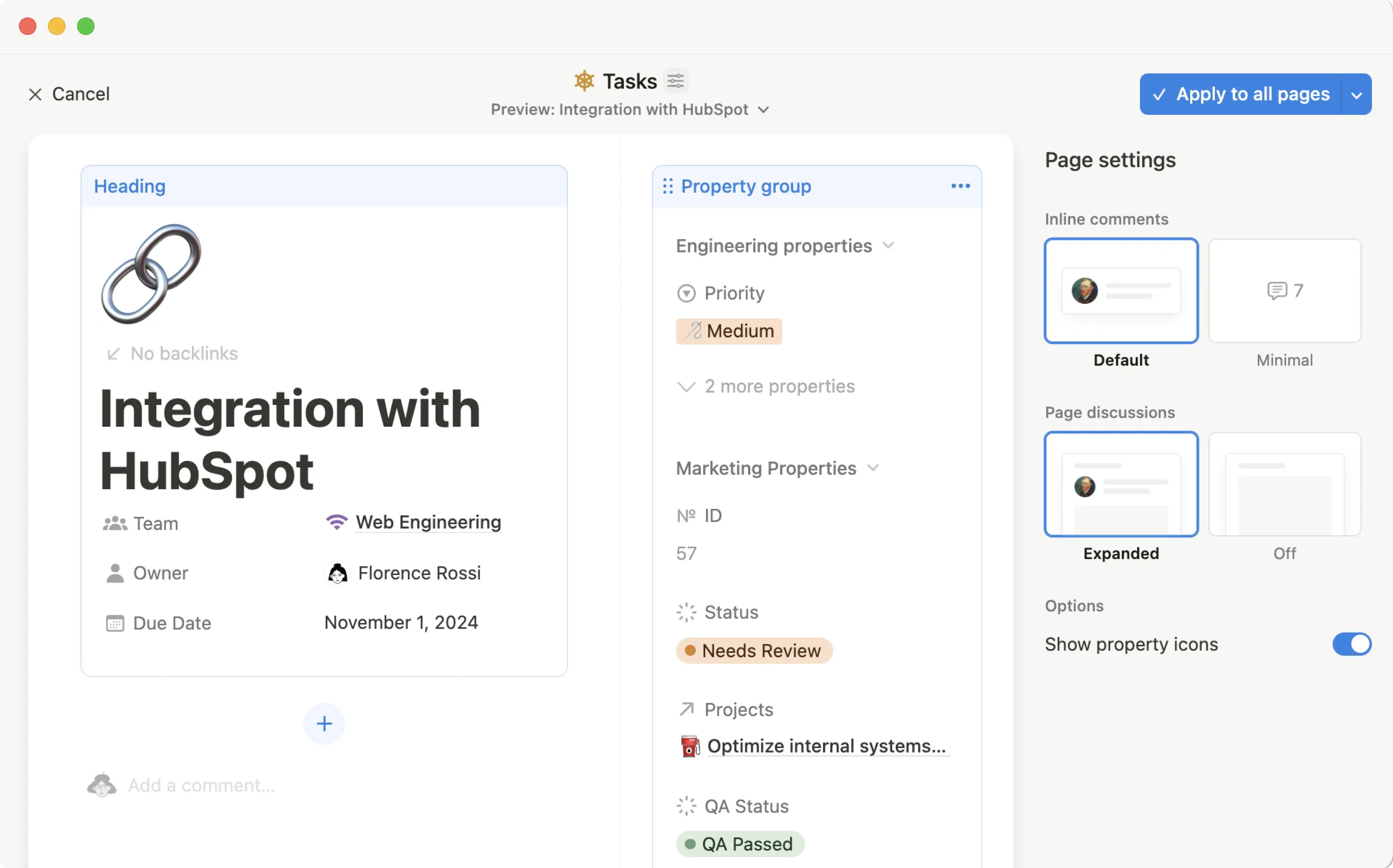 Todas las páginas con la propiedad de ID único tienen una URL especial con el número de ID que permite acceder a ellas. Por ejemplo, si una página tiene el ID TAREA-123 se puede acceder a ella mediante notion.so/TAREA-123.